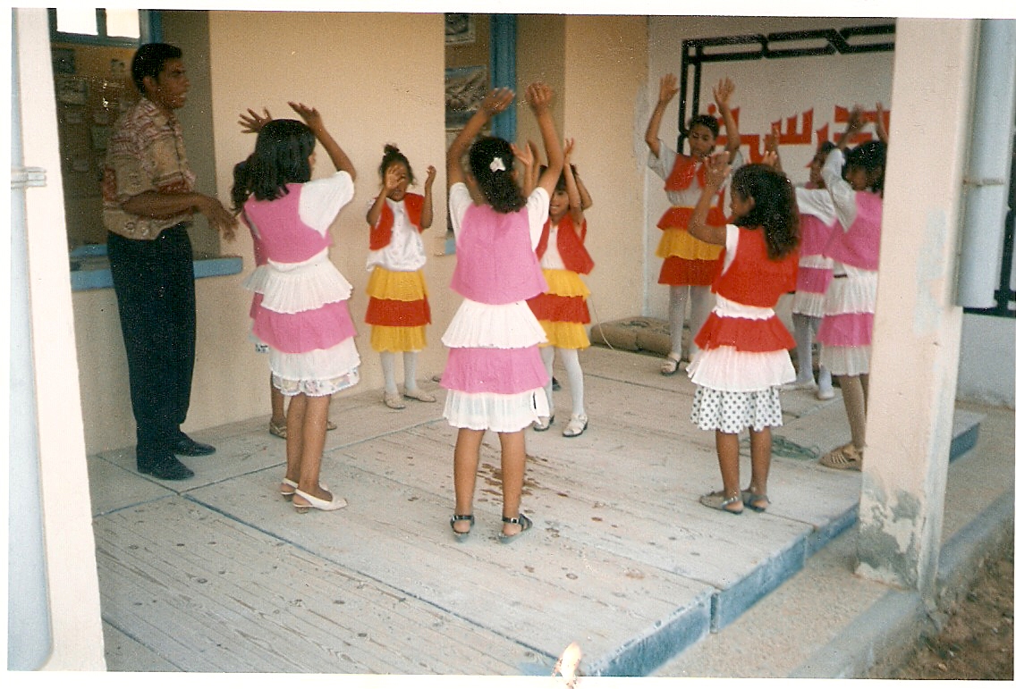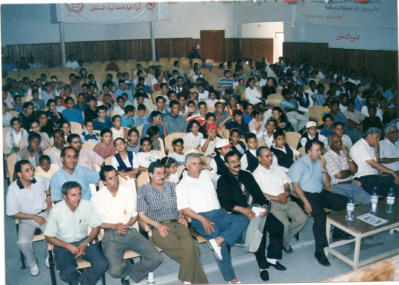 اختتام السنة الدراسية شهدت المدرسة احتفالات متميزة في اختتام كل سنة دراسية و يظهر في الصورة السيد محمد يحي المومني وهو يتابع لوحة راقصة من انجاز ثلة من تلميذات المدرسة |