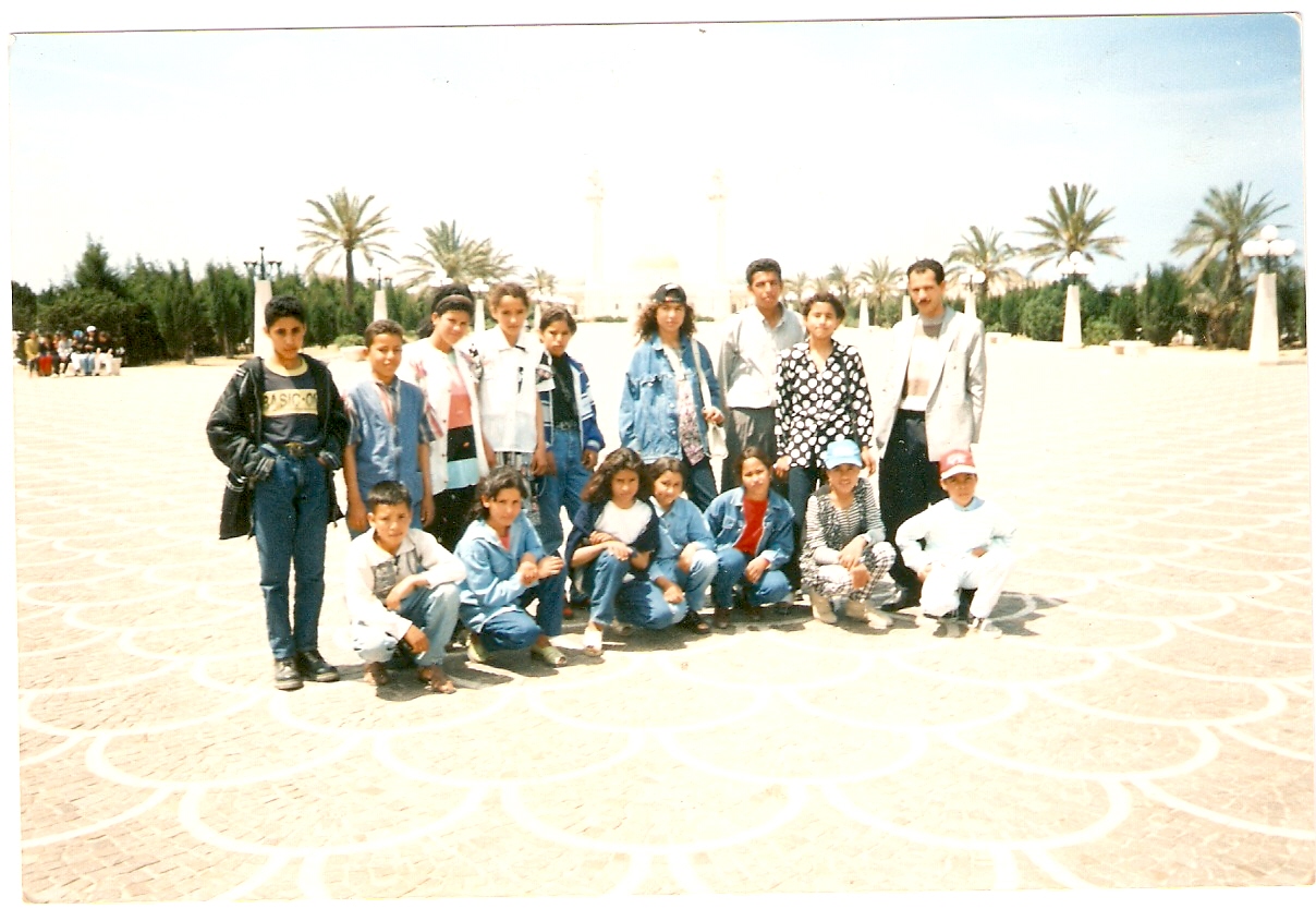 رحلة الى ولاية المنستير ويظهر في الصورة السيدان المنصف الصيد و محمد يحي المومني في صورة تذكارية مع التلاميذ. |