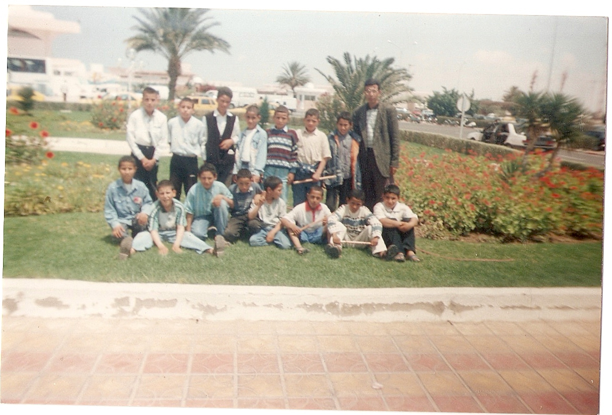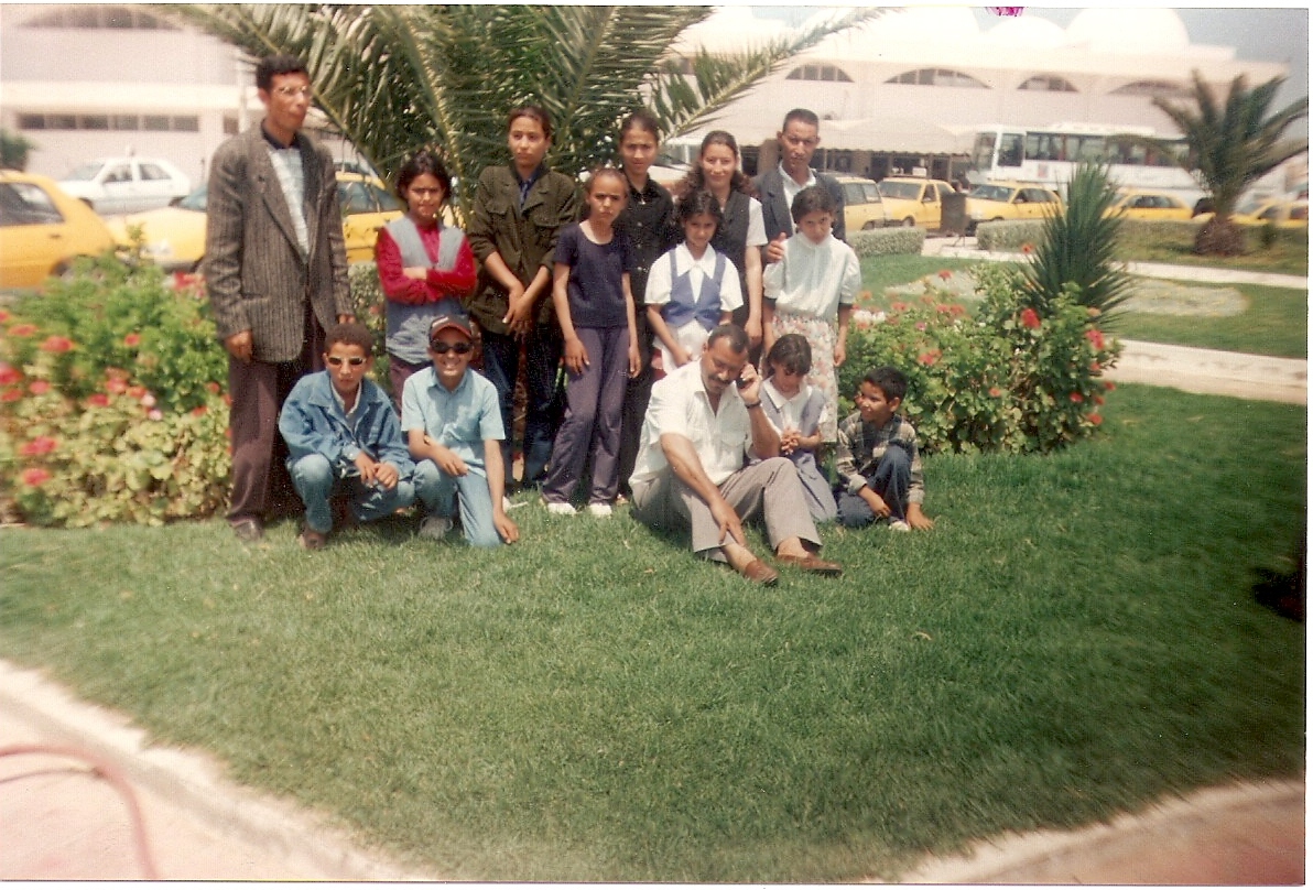 رحلة ال جزيرة جربة و يظهر في الصورة السيد الجمني مومني صحبة بعض التلاميذ في المطار. |