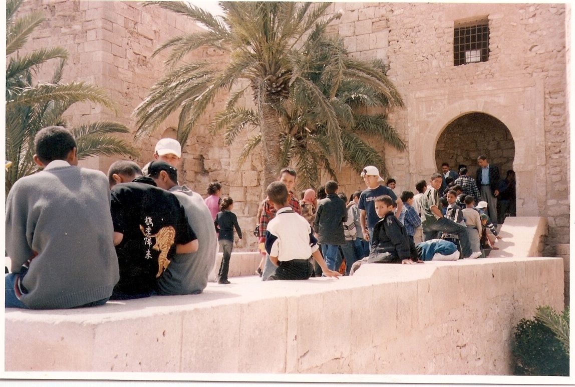 رحلة الى قابس سنة 2008و يظهر في الصورة السيد محمد الترهوني يرافق الاطفال وهم يتمتعون برمال الشاطئ. |